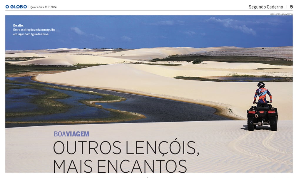 Naquelas terras líquidas, o tempo é contado pelo relógio da maré. Mas, em certas épocas do ano, os ventos também dão o ritmo da viagem. Se há até pouco tempo os Lençóis Piauienses eram desconhecidos do grande público, ofuscados por dunas e lagoas maranhenses, agora são mais uma opção de cenário no Delta do Parnaíba. LEIA MAIS